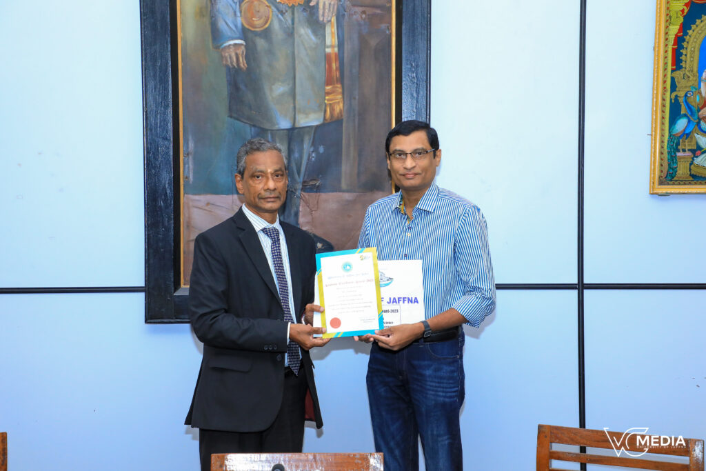 - Professor A. Ramanan and Professor M. Siyamalan were honoured with the Award for Academic Excellence – 2023 at the 491st Meeting of the Senate, held on 4 November 2025 at the Board Room of the University of Jaffna. This prestigious award recognises their exceptional contributions in Teaching and Academic Development, Research, and University Development and Outreach Activities during the year 2023. The accomplishments of Professors Ramanan and Siyamalan stand as a testament to their unwavering dedication, innovative practices, and steadfast commitment to advancing academic excellence within the university community.